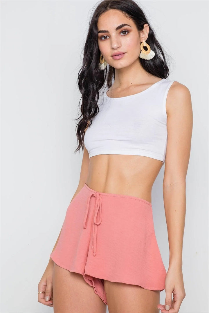 Short features: Mid-Rise, faux self tie string, hidden back zip closure, crinkled style, unlinedModel is 5'8 and wearing Small (Waist: 24", Bust: 32A, Hips: 34")Item Measurements: Length: 10" Waist: 28"True to sizeAvailable in White and Blue