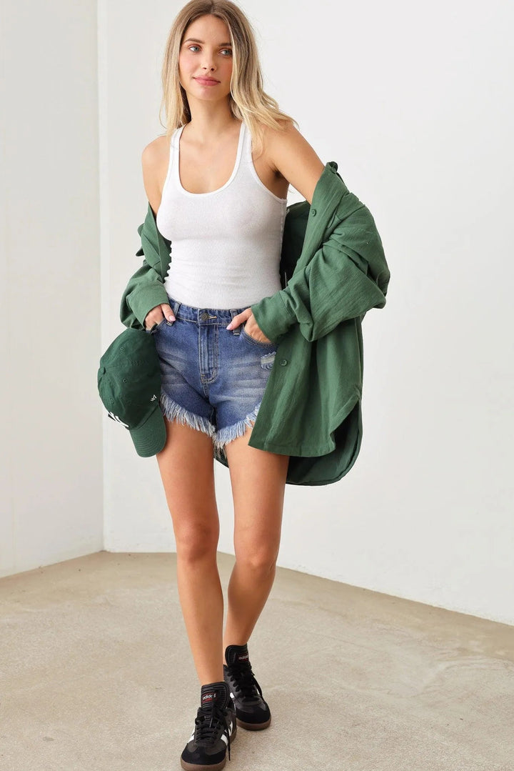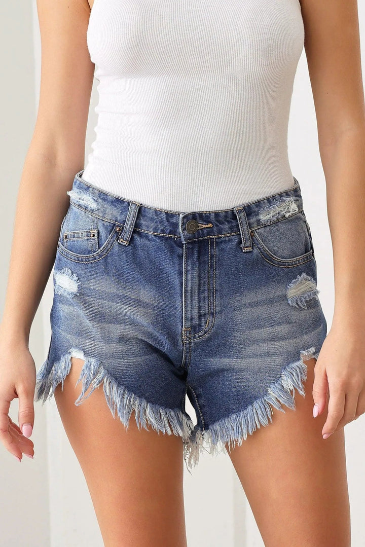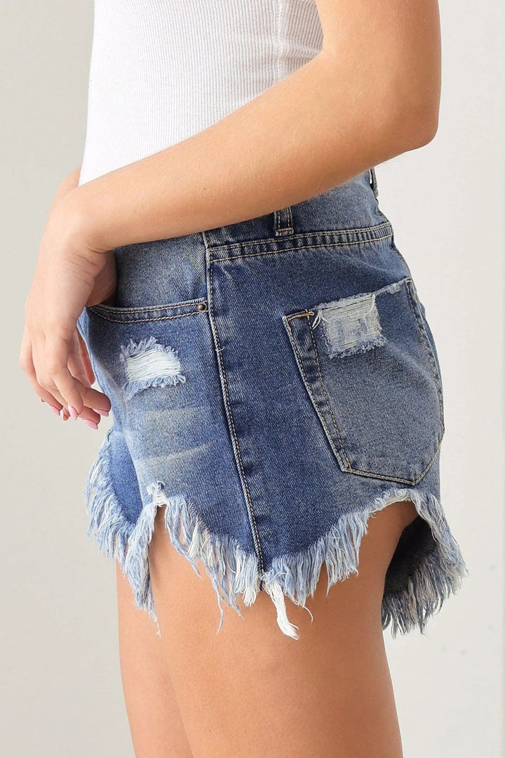 Distressed Frayed Hem Cutoff Denim